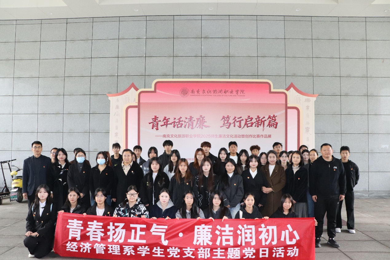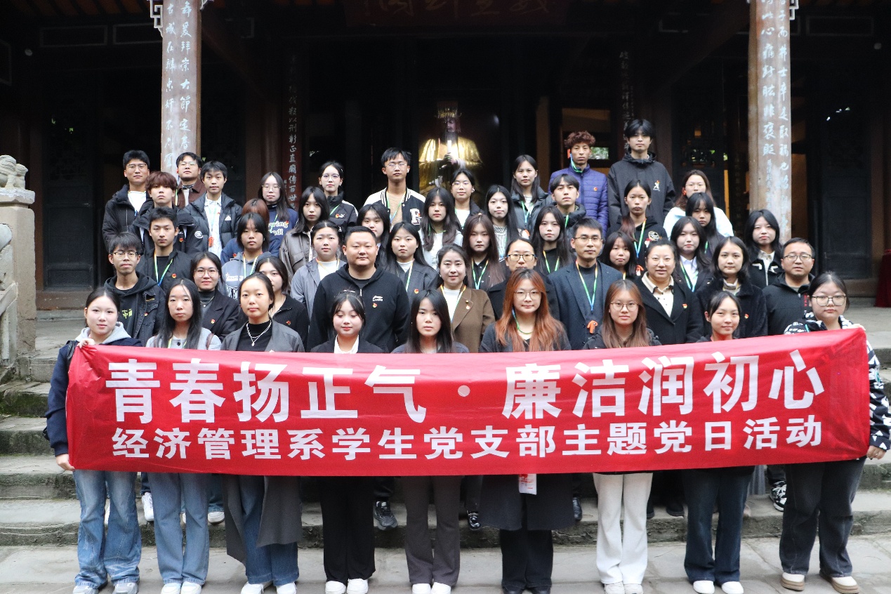 为强化党员规矩意识,永葆清正廉洁政治本色,推动廉洁作风内化于心、外化于行,切实增强党支部凝聚力与战斗力,11月12日下午,经济管理系学生党支部组织全体党员及学生代表,开展“青春扬正气・廉洁润初心”主题党日活动。活动通过集中学习、作品参观、基地研学等多元形式,让廉洁政德理念深深植根于师生心中。
