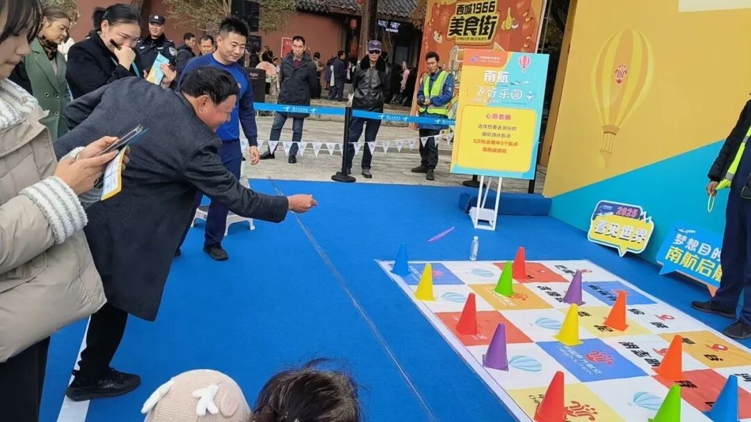 为助力阆中古城机场航线推广及通航2周年宣传,深化校地协同合作,发挥高校服务地方职能,2025年12月6日,经济管理系精心组织 1200余名学生及120名志愿者,参与阆中古城1966张飞广场系列宣传活动,以青春力量赋能地方文旅与交通事业。